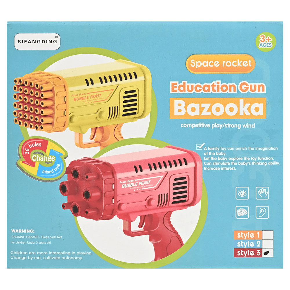 Bring playtime to life with the Bubble Bazooka Education Gun — a fun and exciting bubble-blowing toy designed to spark imagination and joy! With 36 bubble holes, this bazooka creates a burst of colorful bubbles in seconds, making it perfect for outdoor play, parties, and family fun.